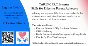 CARES CPRC will present Skills for Effective Advocacy from 11:30am – 12:15pm