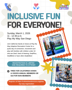 California Hands & Voices families — including those participating in the CARES CPRC Program — are invited to join us for a joyful morning of movement, connection, and play! Families with children who are Deaf, Hard of Hearing, DeafPlus, DeafBlind, and children with other disabilities are all welcome.